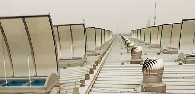 2. 圓拱型電動采光排煙天窗主要材料通常采光不同規格的鋁型材,采光材料一般使用PC陽光板或FRP采光板,天窗頂部為拱型,其好處是可以折射陽光擴大室內采光面積,且拱型的窗面利于夏季排雨,冬季又不易積雪,本身的自潔性較好,表面浮塵雨水沖刷,經常保持較好的采光效果。